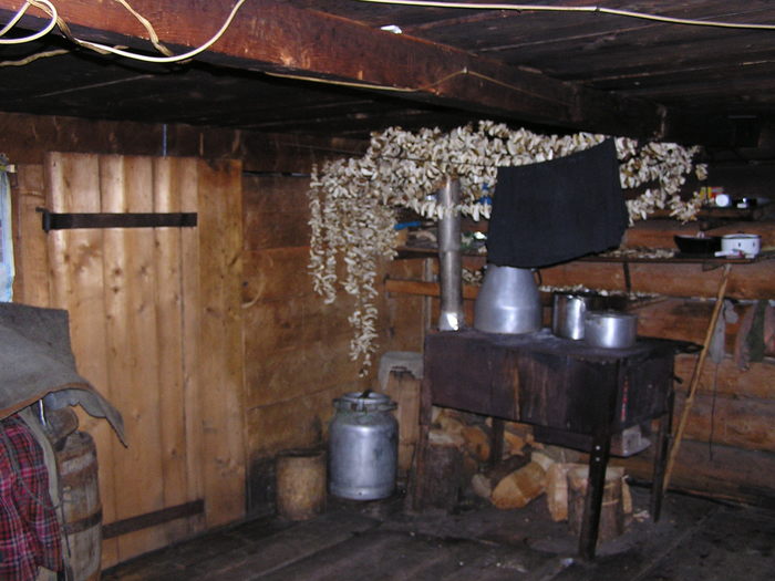 Чердак. Весь в налете копоти и еловой смолы. Слева на полке доходит до нужной кондиции какой-то из видов сыра.