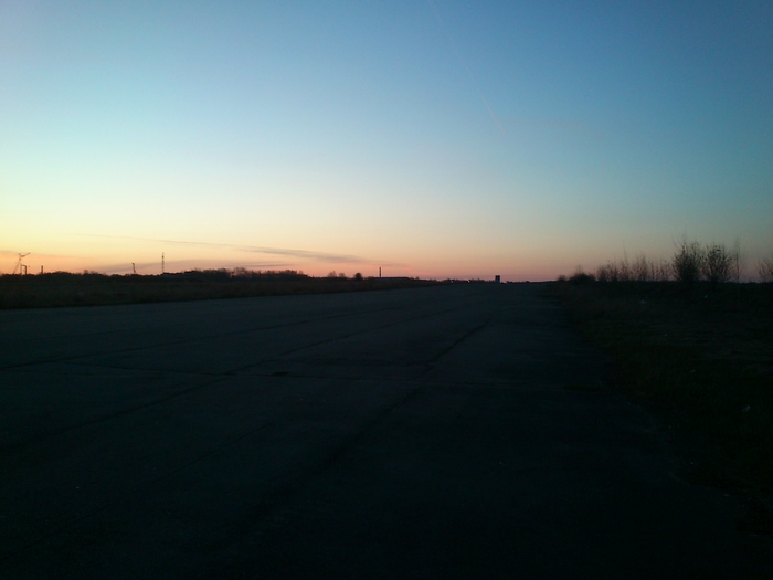 Есть у меня неподалёку от дома заброшенный аэропорт местных воздушных линий. Сейчас он представляет собой просторное пустое поле со всякими СТО по краям, несколькими незначительными заброшками и её величеством - взлётно-посадочной полосой - посерёдке. Кроме редких автомобилистов и местных дачников там практически никого не бывает, чем мне и нравится.