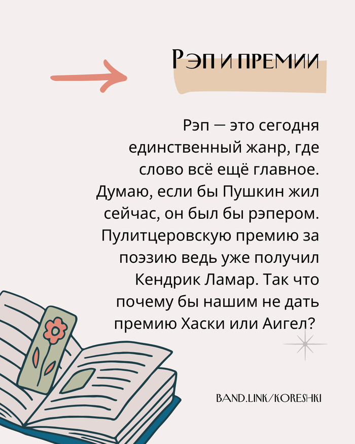 Поставили наш подкаст на первое место, потому что можем. В этом году вручим премию «Корешки» одному из слушателей за самый интересный комментарий и писателю за самую лучшую книгу.