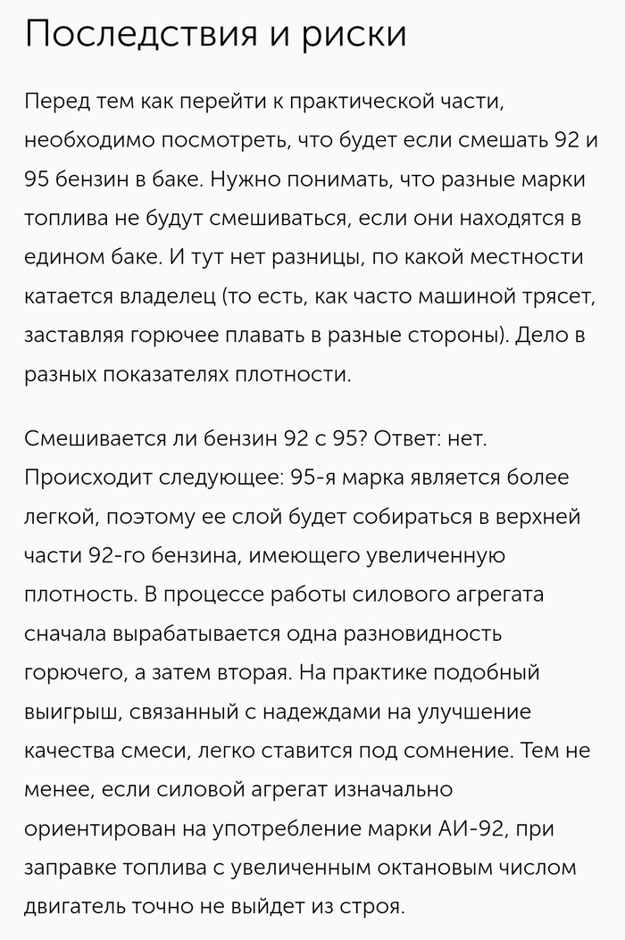 Смешивается ли 92 и 95 бензин? Интересное из интернета