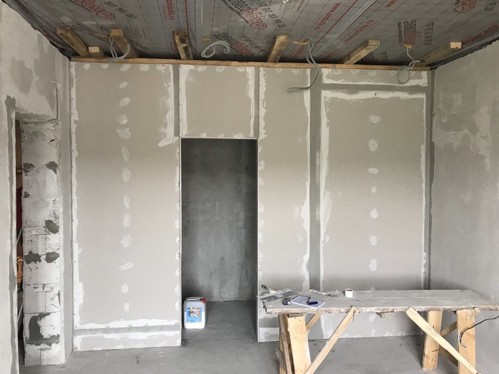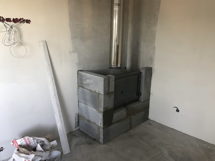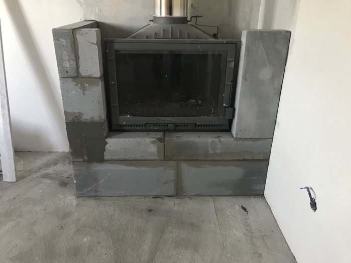 Как увидели выше в спальне сделали стену из гипсокартона, собственно в которой будет гардеробная. А вообще тяжело писать и выкладывать старые фотографии, когда в доме уже ведётся чистовая отделка) НО! Продолжим) Переходим к мечте-Камин)))))) о, да! я всё таки на него решился и вот, что вышло: