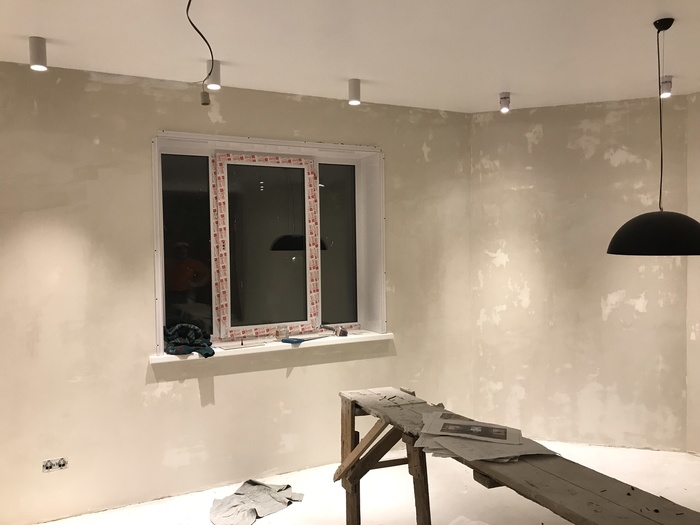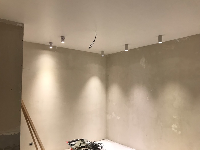 По свету тоже заморочился, сделал трекерные светильники (встраивается трэк, а после можно двигать освещение как вам угодно), кому будет интересно покупал в центрсвет, но можно найти и подешевле -