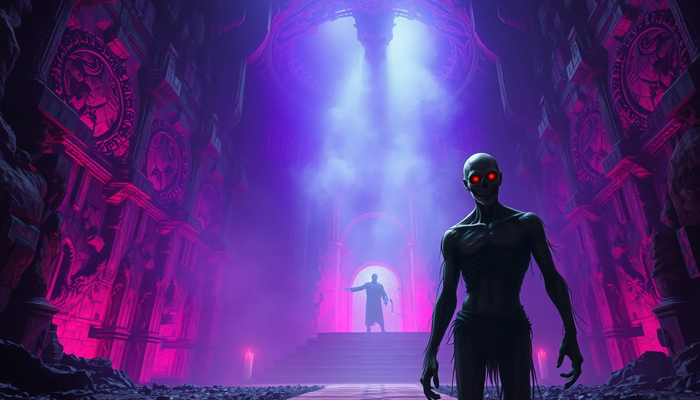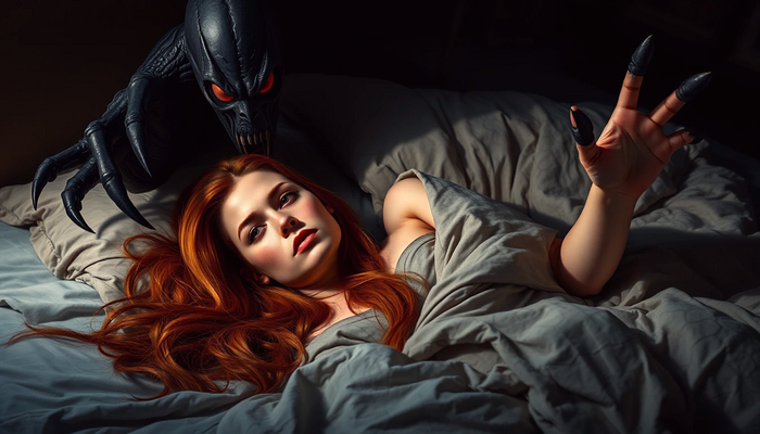 Чем глубже она спускалась, тем сильнее становилось чувство, что за ней кто-то наблюдает. Вдруг из тени вынырнула фигура — высокая, с горящими глазами и когтистыми лапами вместо рук. Это был один из тех, кто приходил к ней в снах. Но теперь он был реальным.