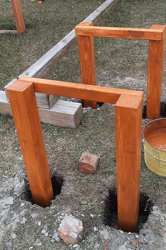 После того как бетон схватился конструкция была разобрана, покрыта защитной ропиткой и собрана обратно. Итоговая высота от земли 60см.