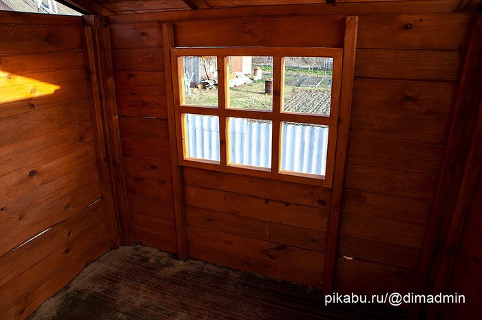 Полы тоже из вагонки. Крыша - это тоже вагонка "рубашкой" вниз, "задником" наверх.