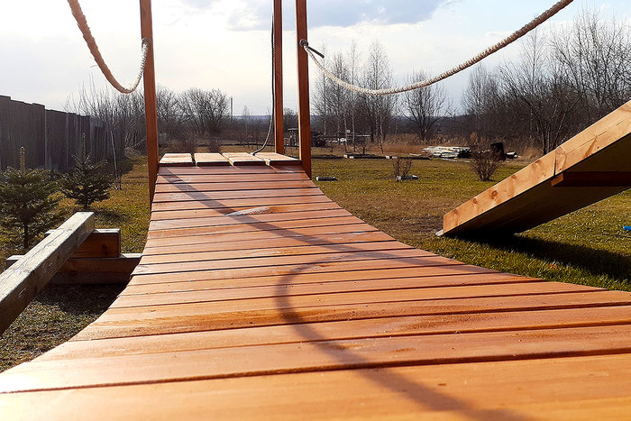 Вот на эту часть подвесного моста еще есть планы (но нет материала), поэтому тут нет бортов как на лестнице на второй этаж.