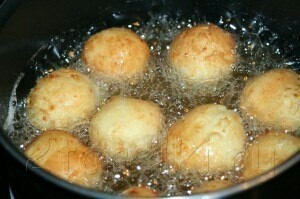 Первую часть теста разделить на 9 одинаковых кусочков, скатав их в клубочки.