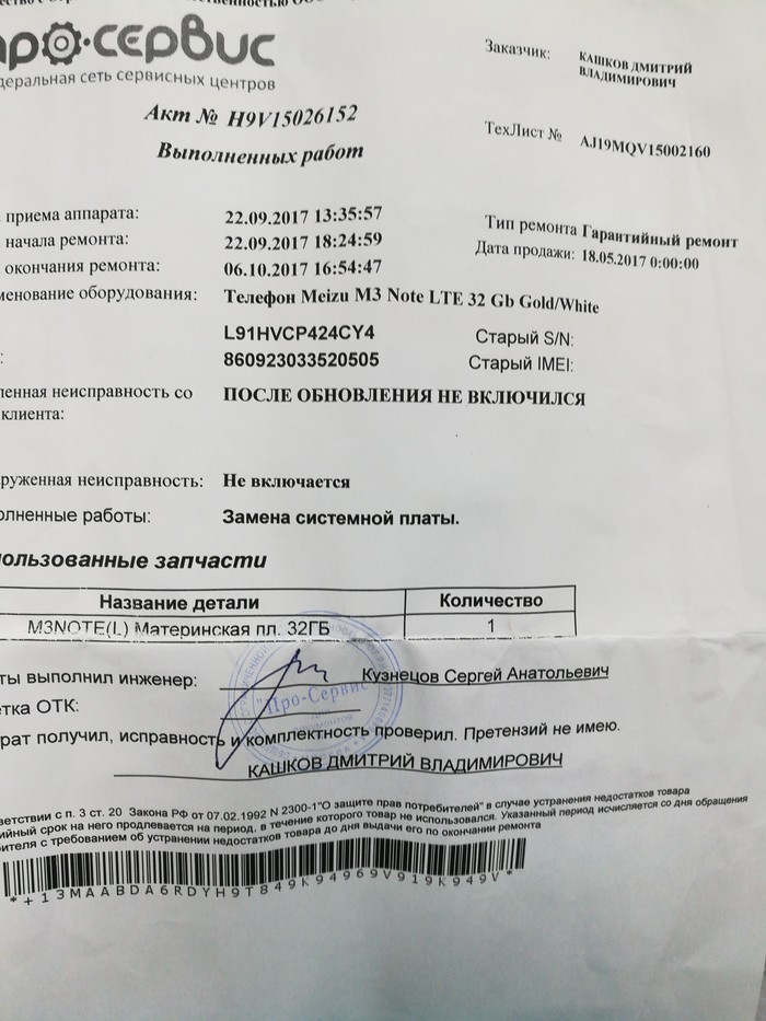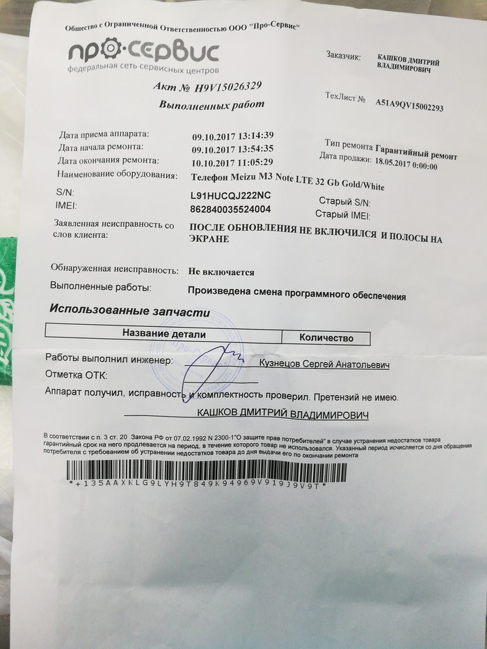 если в течение всего гарантийного года устройство нельзя было использовать более 30 дней в сумме по причине постоянного ремонта и устранения недостатков девайса, то обязаны вернуть деньги. НО предлагали поменять аппарат или ремонт. Согласился на ремонт, но у них система навернулась, я у них провел к этому времени 1 час 40 минут, надо было срочно на работу. Забрал телефон, бумаги, сказали вечером приезжать, программа заработает и телефон заберут на ремонт. Позвонил по 8800,объяснил проблему, мне сказали что повторная поломка и срок ремонтов более 30 суток, это не считается, и поэтому они приняли на проверку. Проверка показала что дефект несущественный(экран, кнопка, интернет), а вот если после замены экрана что-то случится, тогда посмотрим. Куда дальше???