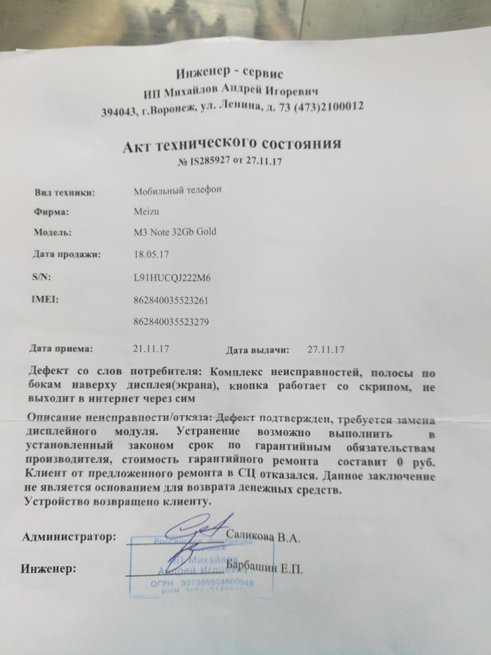 Потом появились полосы на экране, мне прикипело, прошу провести проверку качества, провели.