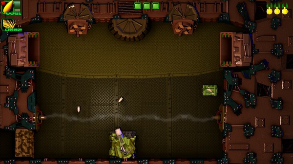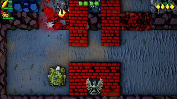 Про геймплей можно не размусоливать. Хотя, пару слов сказать стоит. Вид сверху, как в танчиках; управляем танчиком, как в танчиках; стреляем во все стороны, как в контре; проходим уровни, как в контре; собираем улучшения, как в танчиках; "жизни", как в обеих этих играх. Помимо очевидных сторон геймплея: