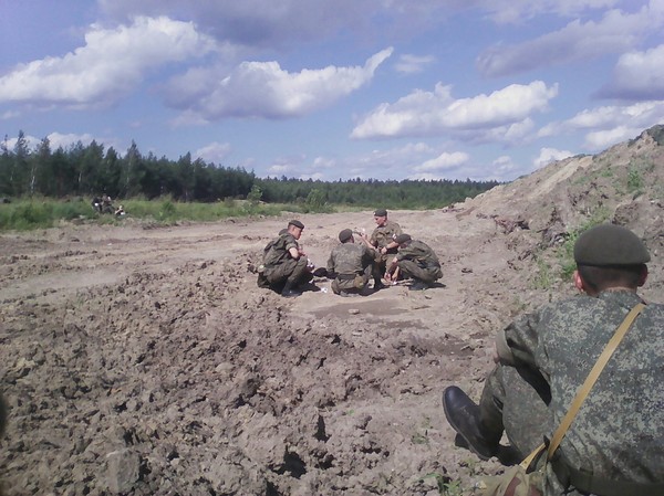 Обедали захваченным сухпаем на полигоне.