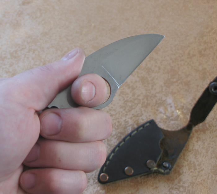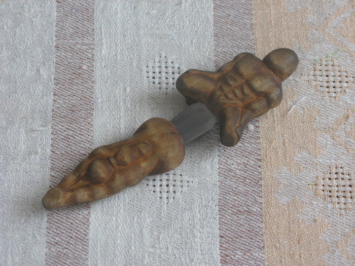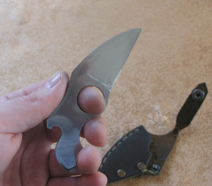 Больстер алюминиевый, сверлённый сверлом )) и точенный надфилем. после надевания простучал молотком, что-бы просели неровности щели больстера и лезвия... образовавшуюся кривизну аккуратно сточил.