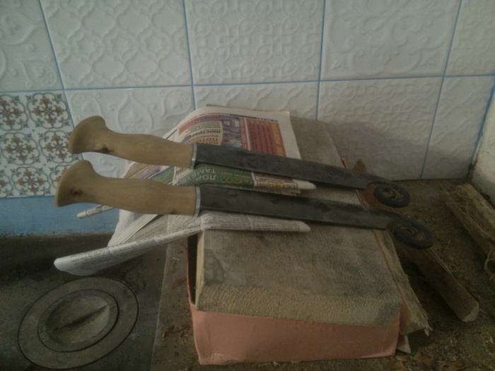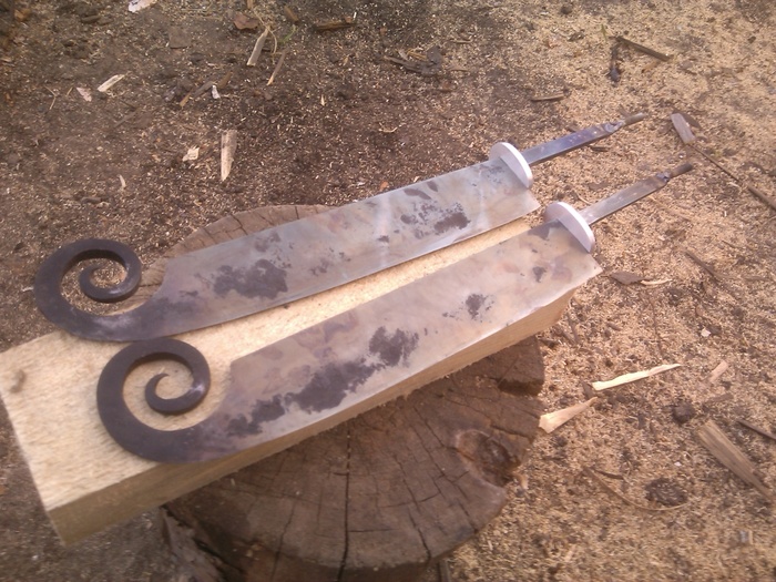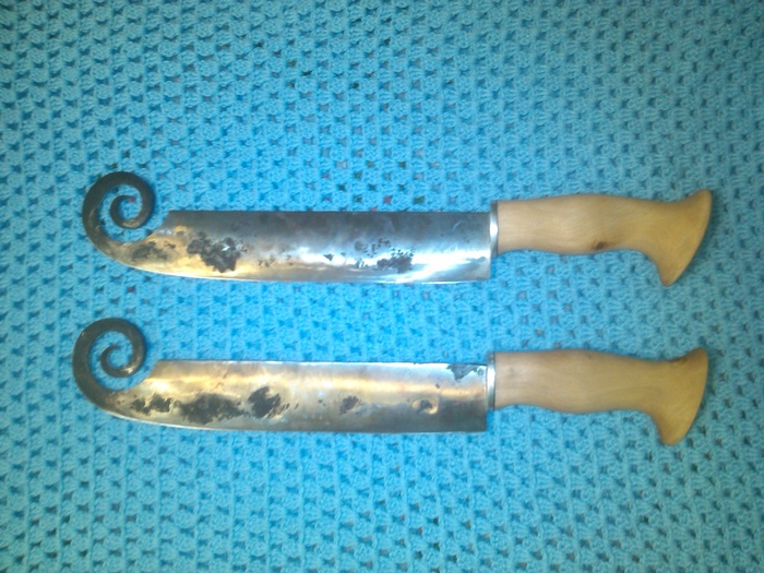 Так как гиймякеши - это парные ножи, то решил ковать сразу два, чтобы не ошибиться с толщиной и длинной носиков. Второй делался быстрее и сподручнее. )