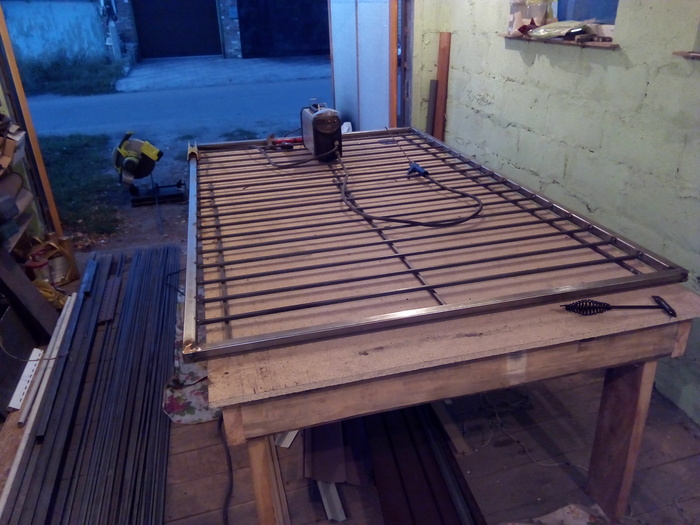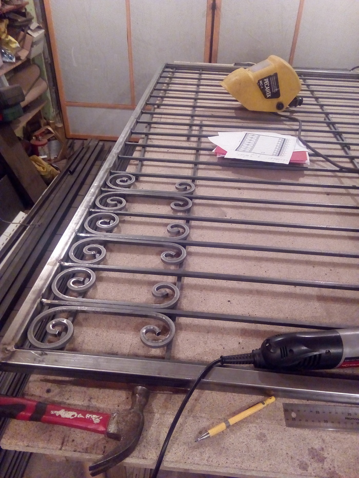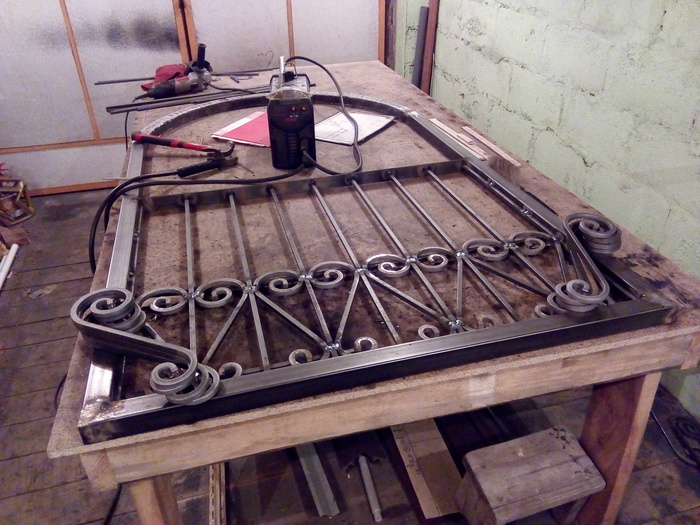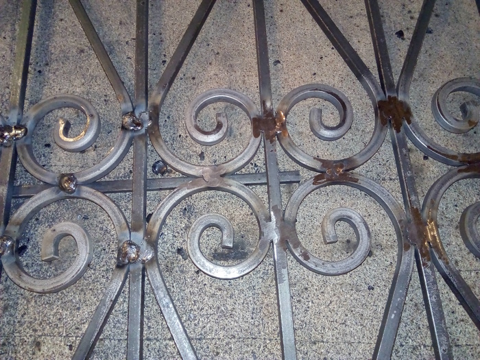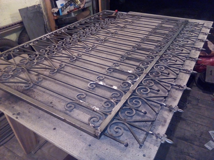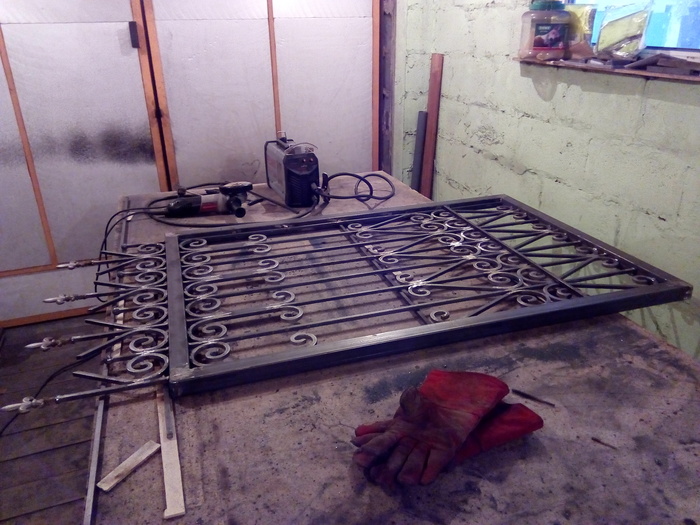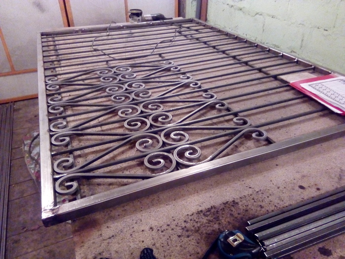 Почти готовая секция забора. Соединения проваривал и зачищал с двух сторон. Для крепости.