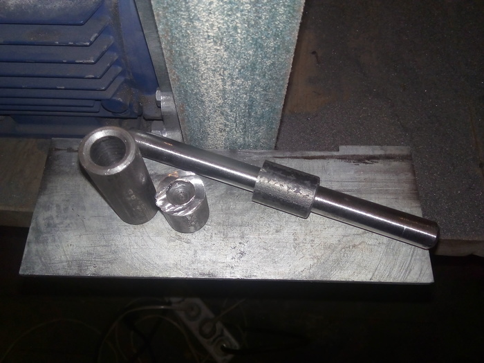 Привариваю к оси язычок и ручки. Защёлка будет не разборная.