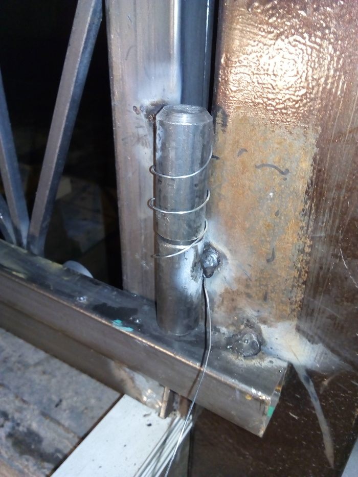 В интернете высмотрел, как варить петли. Проволока равномерно отдаляет петлю от поверхности столба, что необходимо для работы петли. )