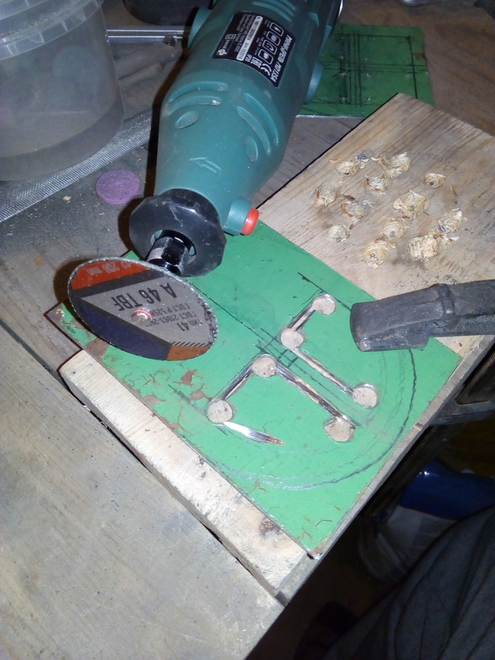 Маленькие пропилы делал бормашинкой. Покупные отрезные круги без усиления стеклопластиковой лентой , состоят только из образива и стирались за один пропил. Круг сделал из диска болгарки.