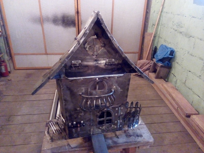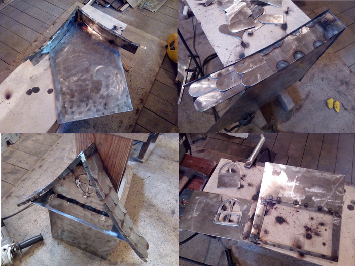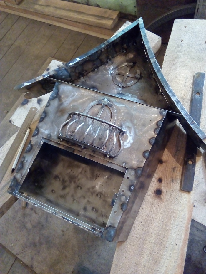 Приклепал дверцы и щеколду. ) Шарниры к крышечке вбросной щели приварил. Но как-то не очень хорошо и красиво получилось. ) Отдельно показывать не стал, что бы матёрые, да и просто сварщики не засмеяли.