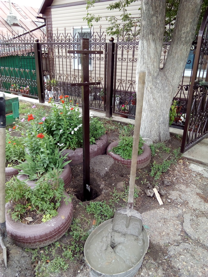 Когда устанавливал столб соседи поглядывали - что это он за крест тут вкапывает? )