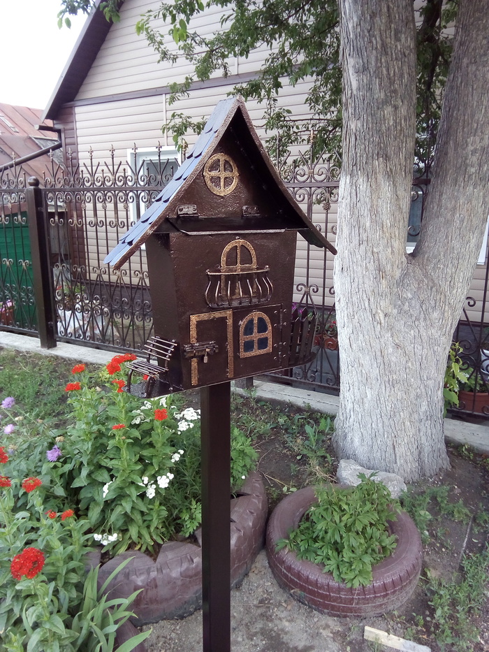 После постройки нового забора встал вопрос о замене почтового ящика. Старый ящик был выкрашен в зелёный цвет и вообще, весьма "раритетный". ) Просто купить новый почтовый ящик не наш метод! ) Да и ворота от старого гаража остались. Почти халявный металл! Новый покупать не надо, а этот жалко сдавать на металлолом!