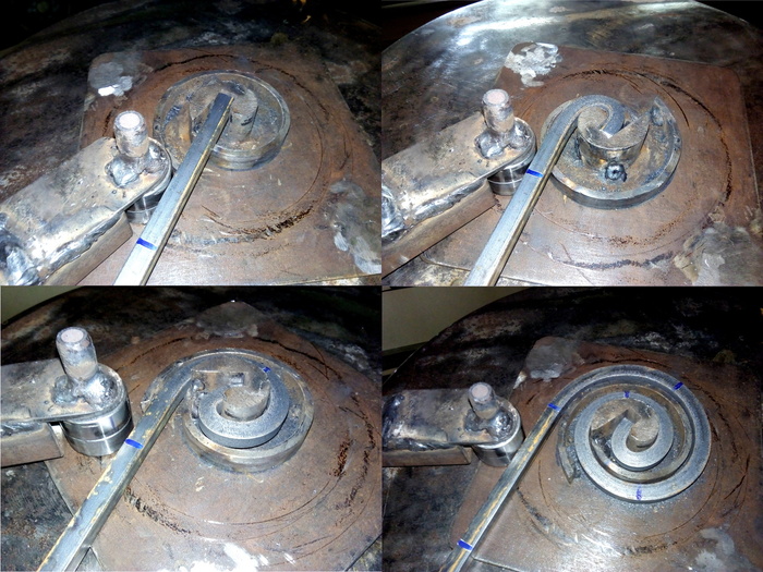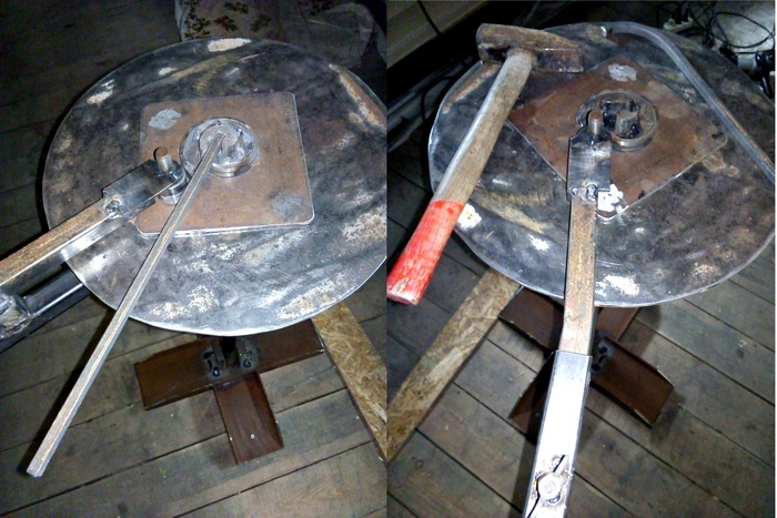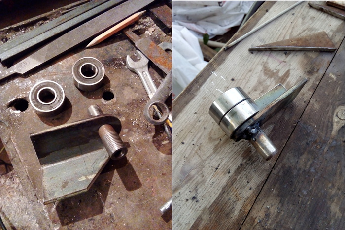 Фотовалы обработал молотком до плоского состояния. Они насажены на железную полосу, используемую для подвесов к ящикам с оборудованием.