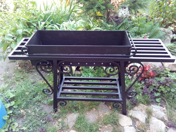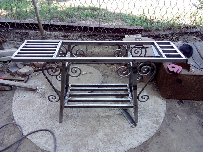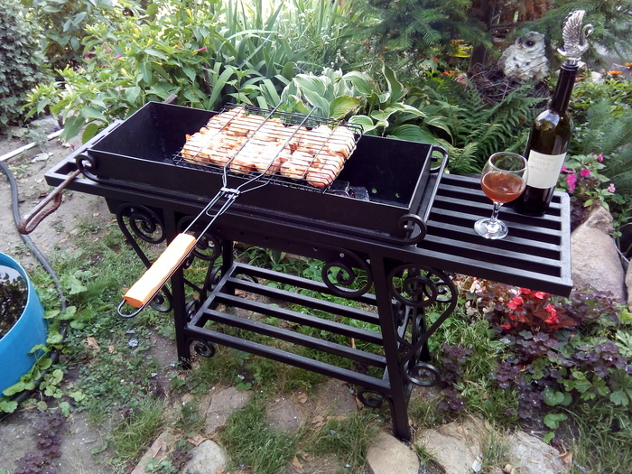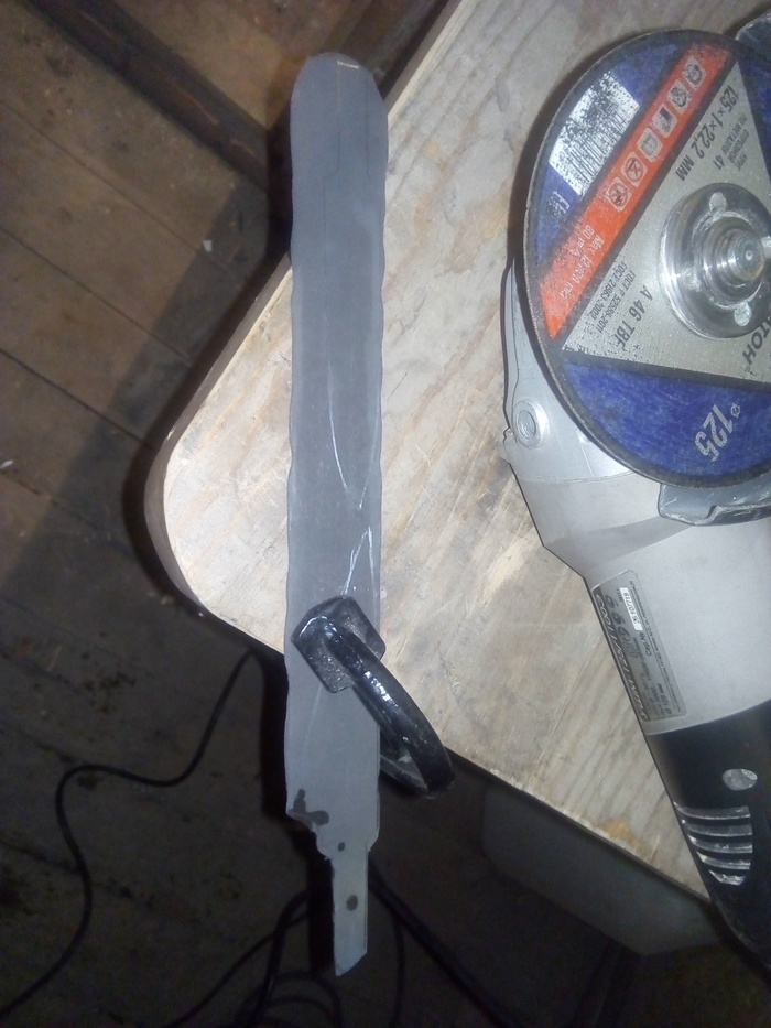 Получилась вот такая штука. Гарда какая-то катанистая и не гармонирует с тяжелым лезвием. Защитная сетка вентилятора слишком воздушная, больше подходит к шпаге.