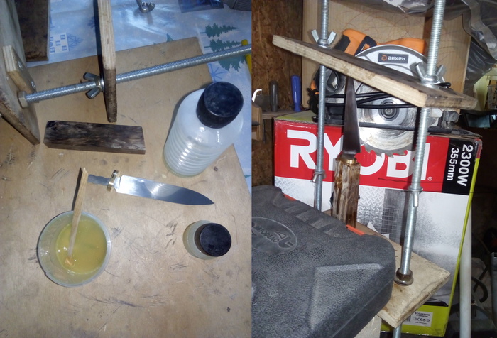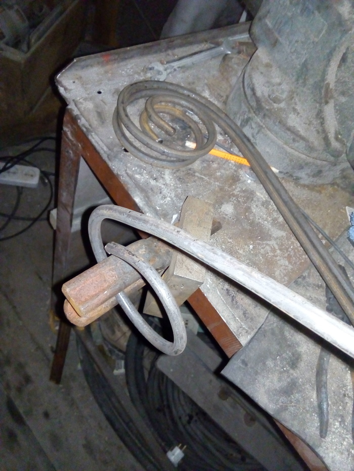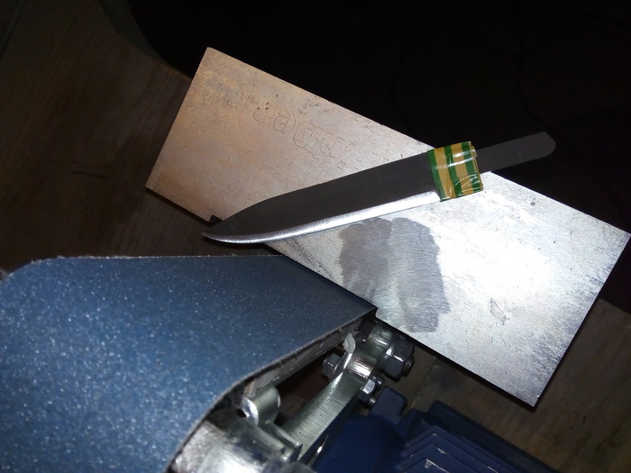 Рукоять у начала клинка была утолщена синей изолентой и на это место был насажен радиатор.