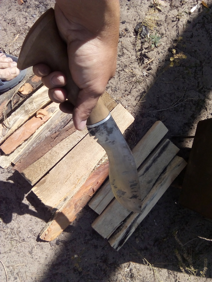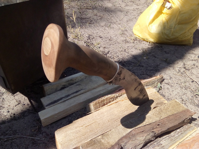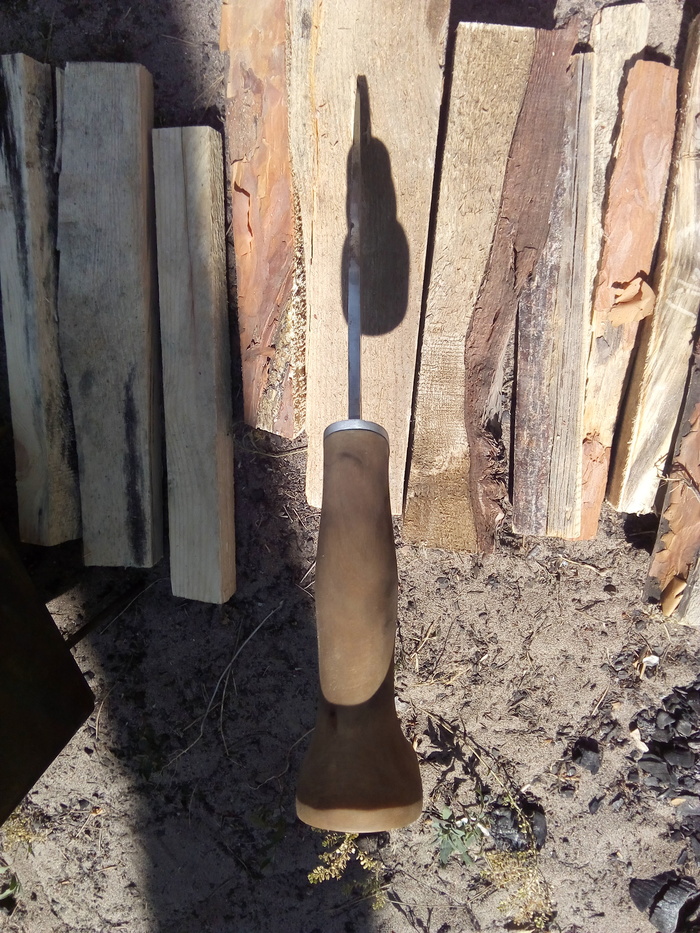 Ручка - орех, с ножки стула. )) Не, не специально стул ломал. Просто собираю такой хлам. Для изделий. У нас большую трудность составляет не изготовить изделие, а собрать материал к нему. )) Желательно халявный. Заказывать кусочек деревяхи через интернет, как-то не хочется. То же относится к металлу на больстер.