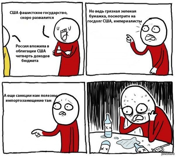 dimkajd Теперь доллару точно крышка 10 лет назад Россия в мае вложила в гособлигации США четверть доходов бюджета - на 4,1 млрд долларов, увеличив свои вложения до 70,1 млрд долларов. Доллары Россия Рубль Политика