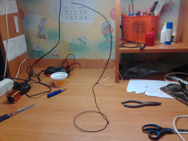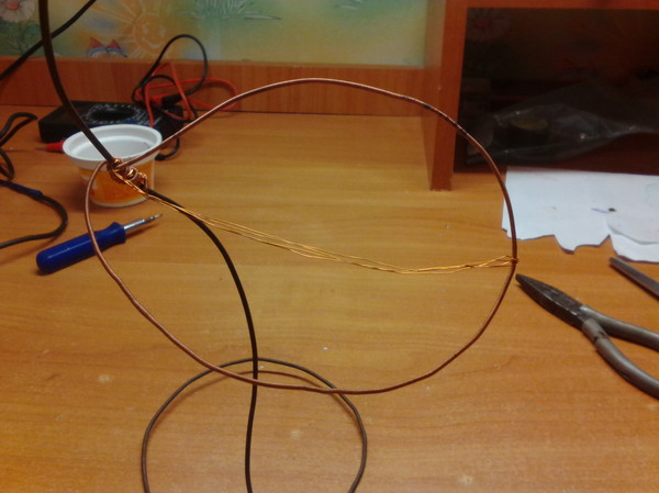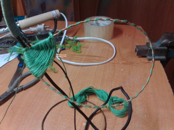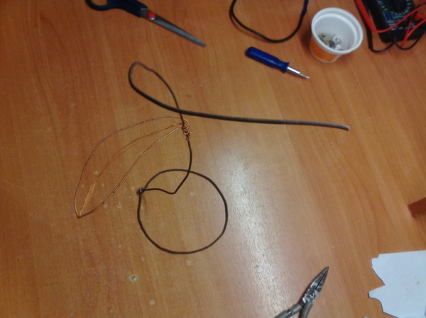 К сожалению фотографий процесса пайки не сделал, но там в общем то и не было ничего интересного. Далее согнул из стальной проволоки проволоки вот такой каркас:
