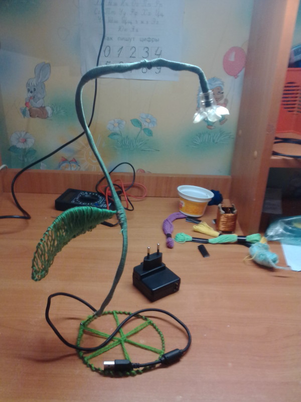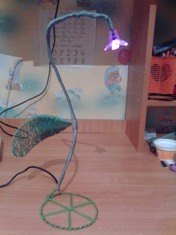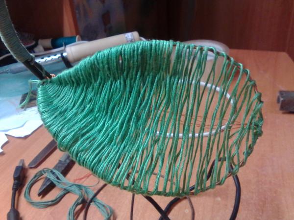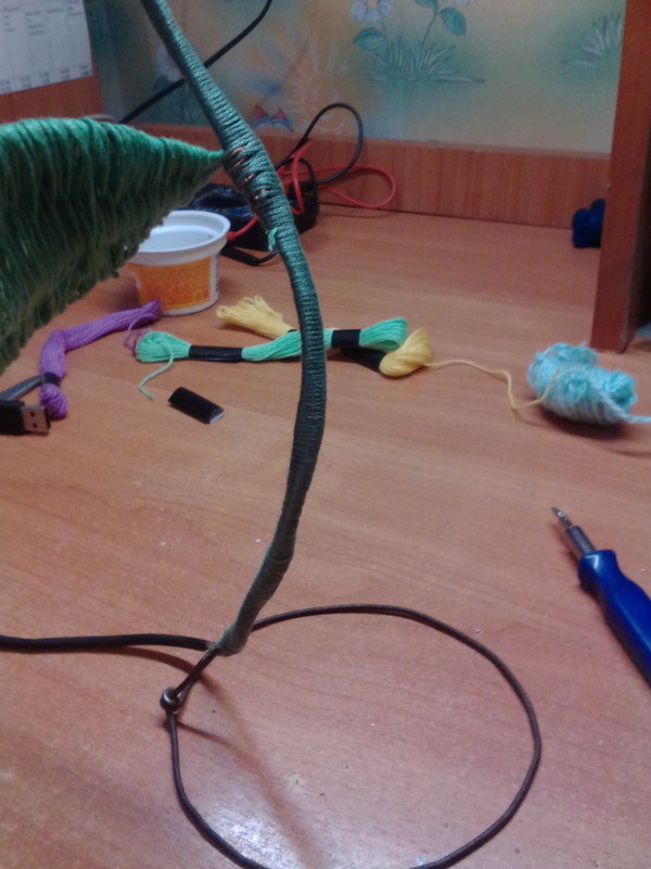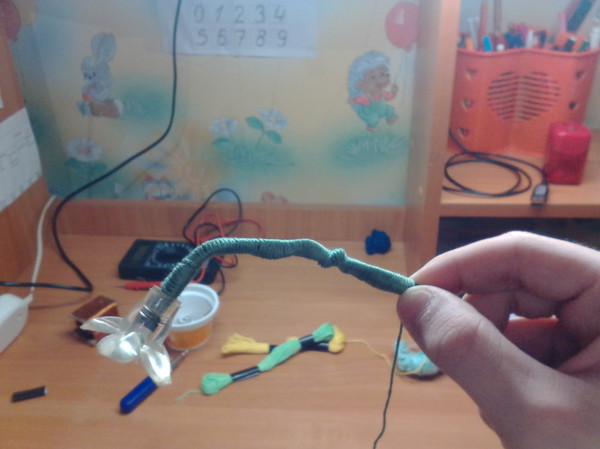 Начал обматывать нитками. Потом, уже в процессе, понял, что надо было начинать с листа, а то потом нитка на стебле мешается.