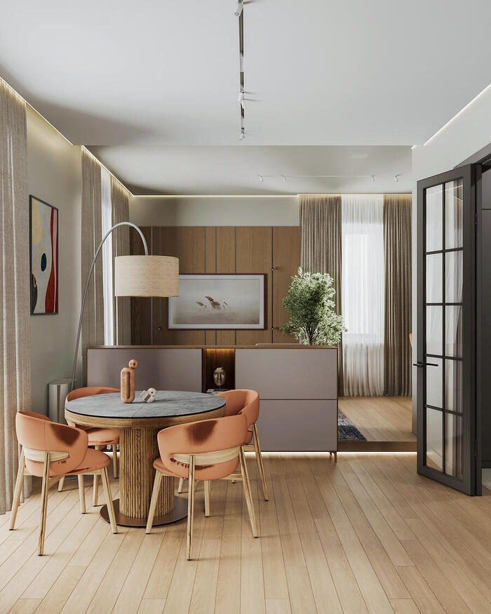 Подбирать материалы, мебель и декор, учитывая стили и тренды современного интерьера.