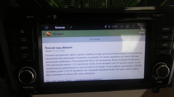 19 dmann Всем Пикабу, посоны! 9 лет назад Автосалон Ниссан, Харьков Показать полностью 3 [моё] Автосалон Android Пикабу Автомагнитола