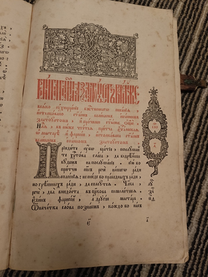 Здравствуйте, попала мне в руки данная книга. Единственное что нашёл про неё- книга Иоана Златоуста. Состояние переплета плохое. Думал обратится к антикварам, чтобы узнать ценность данной книги, да всё не получается, то работы много, то детей выгуливать надо)), то приболел- короче жопа по времени)). Может тут кто подскажет что в ней написано