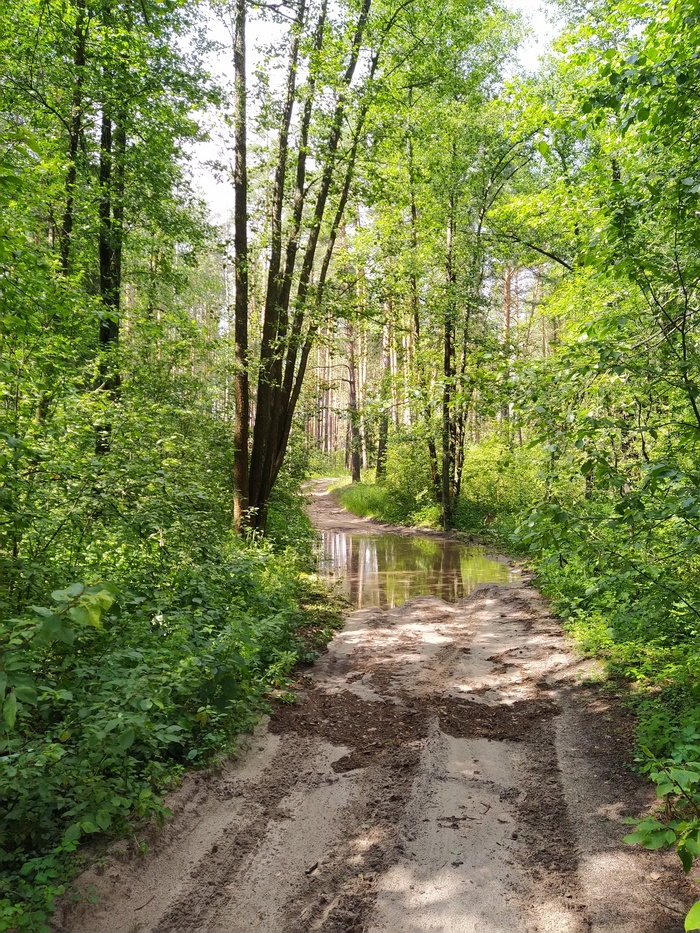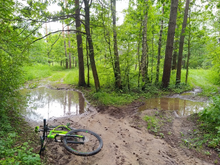 Накануне обещали дожди, а в день гонки прогноз был отличный. Решил сгонять на электричке на разведку. В телеге народ просил посчитать лужи и сфотать мостик.