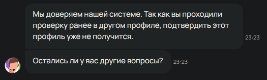 Задал вопрос - к какому именно аккаунту уже привязаны мои данные, получил закономерный вопрос, что это "конфиденциально".