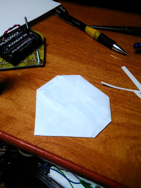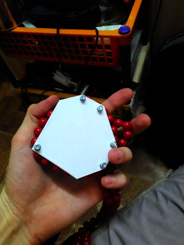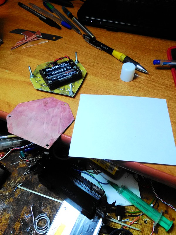 - вырезан такой же кусок текстолита и обклеен бумагой (поспешил и вырезал так, что я не смог сделать боковые стенки из текстолита, висит обмотанное на бусах)