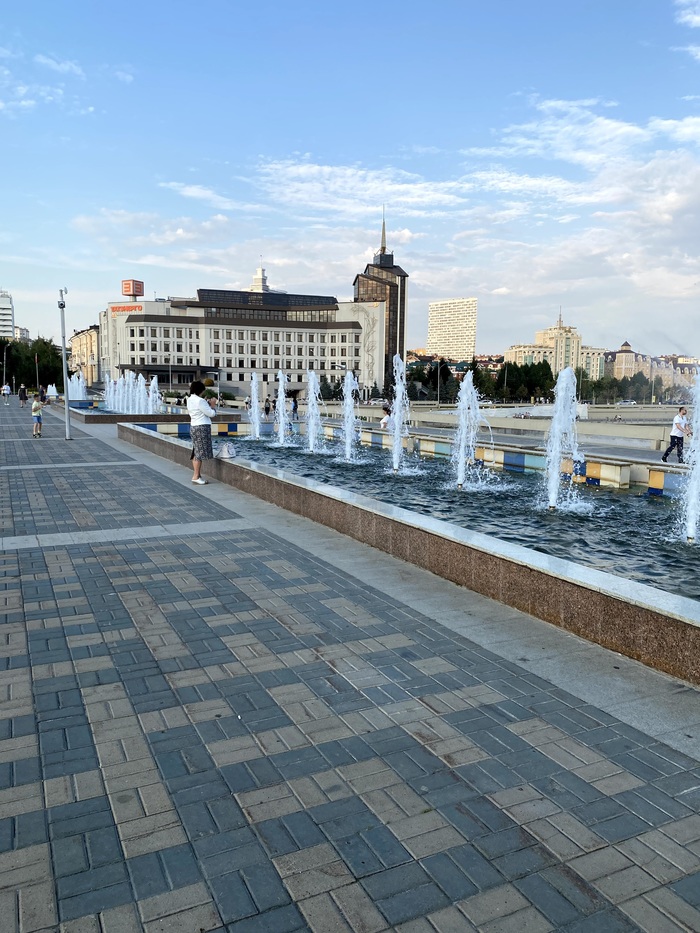 Завершилась прогулка по Баумана посещением сквера Габдулы Тукая недалеко от парка тысячелетия Казани. До последнего мы не дошли, так как зависли на катании на самокатах в этом сквере. Попробуйте сказать что на заднем фоне не пологая крыша новосибирского Глобуса!