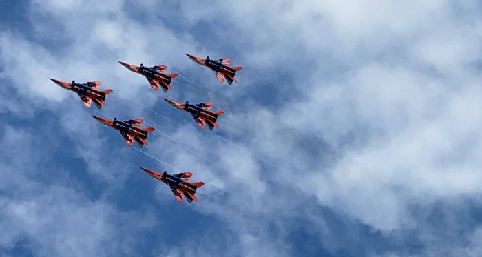 Заняв место в первых рядах на холме мы наблюдали за этим действом. Было увлекательно но нихрена не понятно, чем одна фигура "вжжжуууух" отличается от другой "вввняяяяуу". Иногда казалось что пилоты выписывают одно и то же.