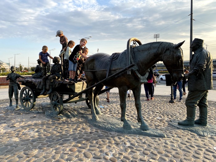 Наше путешествие пошло по одной из местных достопримечательностей, куда обязательно стоит заглянуть. Одна из улиц возле казанского кремля - ул Баумана была аналогом московского Арбата. Она начинается возле легендарной мечети памятником благотворителю Казани. История человека, нашего времени, который не будучи миллионером помогал так, что заслужил известность и стал примером для подражания. Думаю, именно про таких надо писать побольше в новостях. Работая возчиком на Казанском колхозном рынке, выращивал скот у себя в сарае и на вырученные деньги подарил более 80 пассажирских автобусов и легковых автомобилей детским домам Советского Союза и России. Так говорит Википедия. Складно, не так ли? Но давайте заглянем дальше, чем выхолщенная статья о жизни человека после его жизни. Отзывы на tripadvisor доставляют... в частности там упоминается что его пытались посадить за содержание коров, на средства от продажи которых он меценацтвовал. Реальная история любого персонажа оказывается как всегда богаче любого памятника, с этого персонажа вылепленного. Люблю такое.