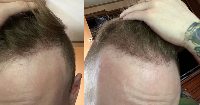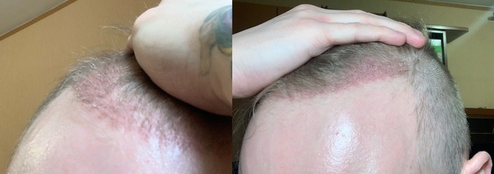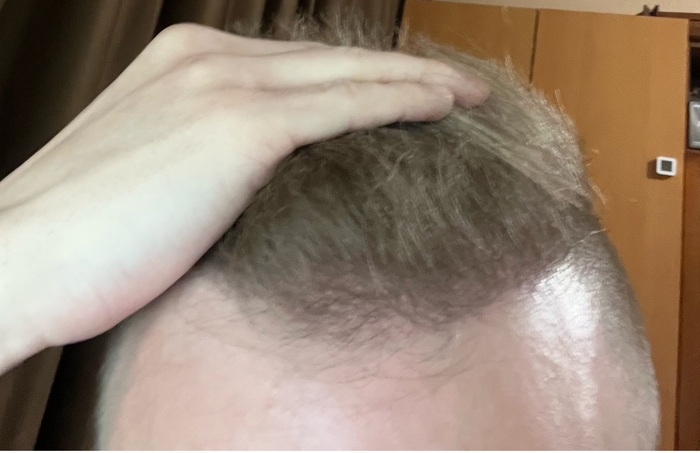 Обратите внимание, у меня на голове есть участки, о которых я писал в начале поста. Участки, где из-за детских травм или ушибов не растут волосы. Мне не доставляют они беспокойства, но, возможно, я их в ближайшее время устраню.