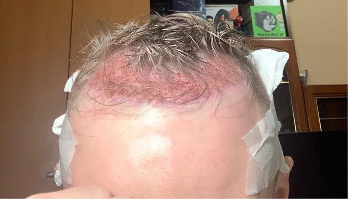 После завершения операции Вам заклеивают донорскую зону и ни при каких обстоятельствах не касаются зоны посадки. Вам вообще к ней нельзя будет прикасаться 5 дней. Были случаи, когда пациенты вызывали такси или садились в автомобиль и задевали головой рецепиентную зону (зону посадки). И в это же мгновение значительная часть результата операции шла коту под хвост. Поэтому когда я вызывал такси, то вызвал такси классом повыше, где водителю объяснил, что нужно ехать аккуратно, не тормозить резко, чтобы я из-за торможения не ударился о сидение, которое передо мною.