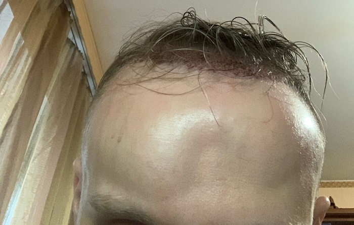На следующее утро меня ждал сюрприз. Так как я не употребляю вообще никаких таблеток. У меня никогда не болит голова, я не испытываю никакие боли. То я отказался от гормонального препарата для снятия отечности. Потому что знал, что мой организм должен справиться сам. Я вообще очень боюсь быть зависимым от какого-либо препарата, поэтому не употребляю таблетки. В общем отек попал на лоб. Выглядит смешно и это продолжалось 3 дня.