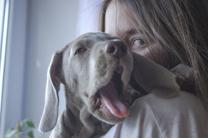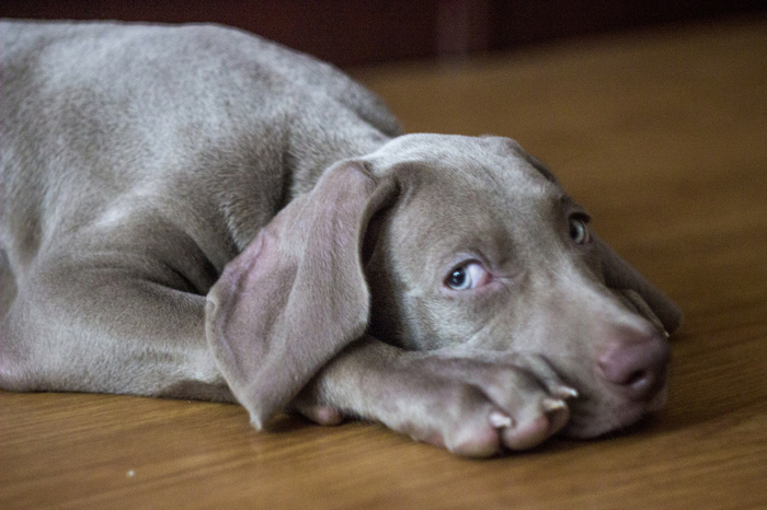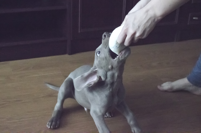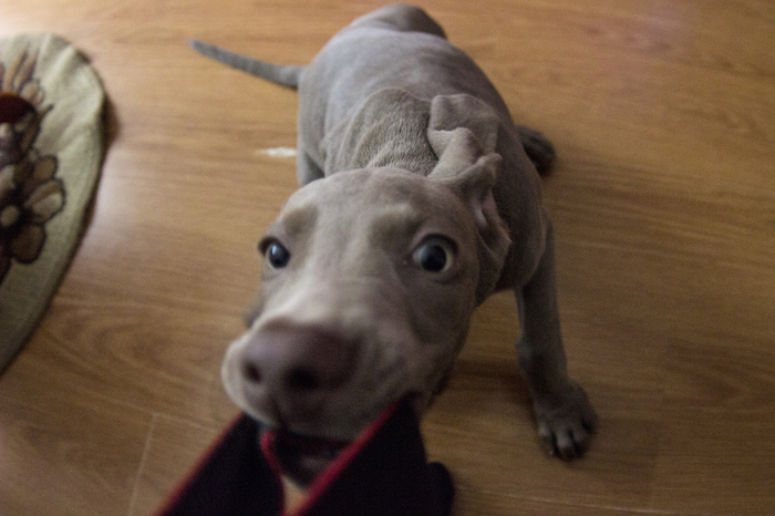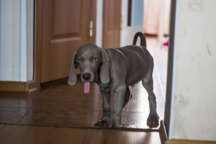 Хочу поделиться с вами процессом взросления нашего пса. Знакомьтесь, Феджеви, или просто Федя. Порода - веймарская легавая.