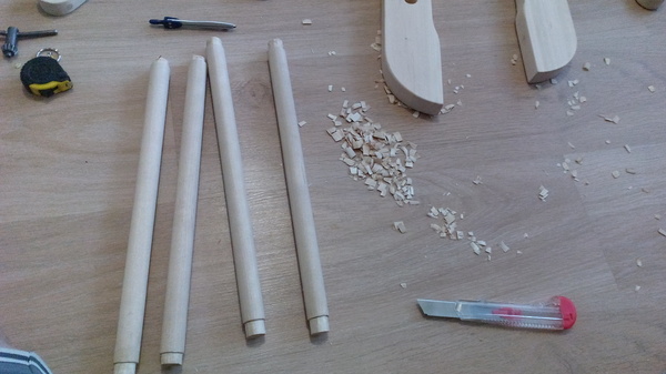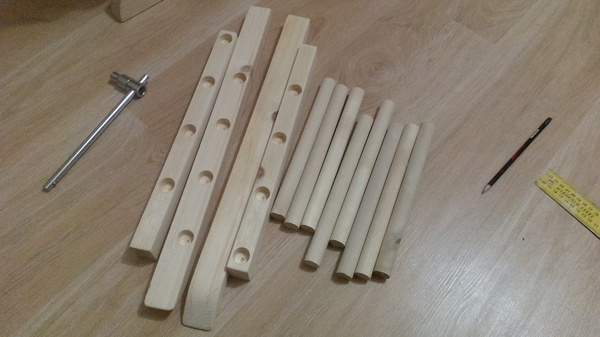 Еще купил деревянных шплинтов, просверлил с торцов брусков отверстия и на клей забил их. Так я думаю будет покрепче