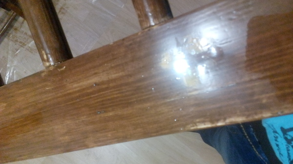 Про ошкуривание я молчу. Соответственно между каждым слоем все шкурим мелкой наждачкой. Далее покрываем лаком в два слоя. Вот уже деталь, покрытая два раза.