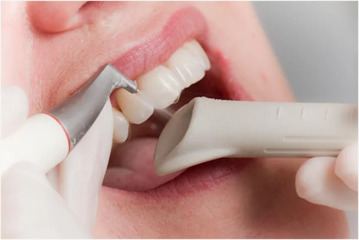 — Air-flow – воздушный поток с водно-абразивным раствором -для удаления мягкого и плотного зубного налета;