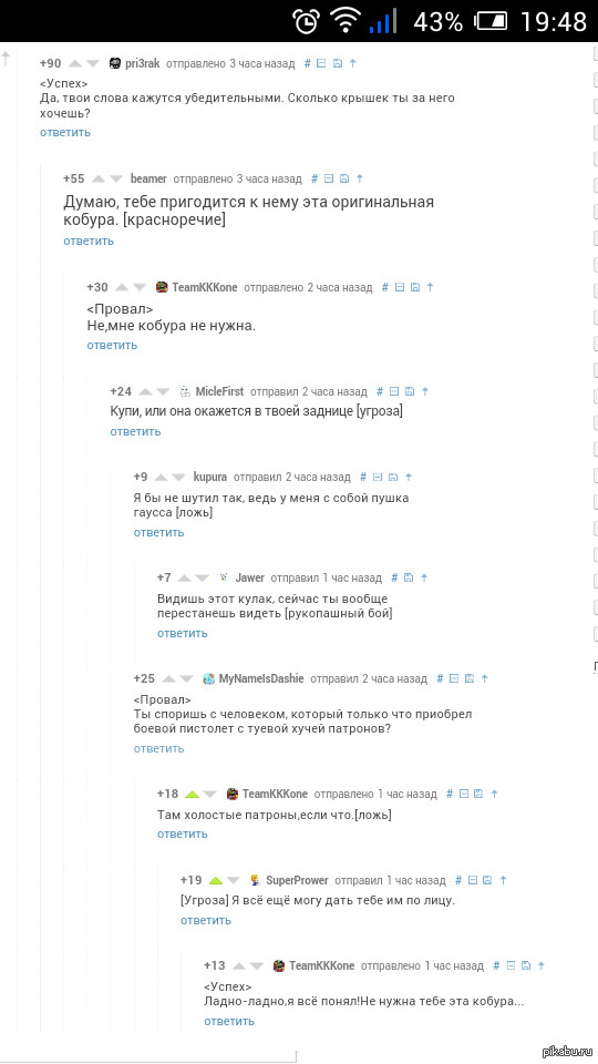 Грохот, осколки. Я пришел в себя и как-то весь обмяк, и едва не вырубился, словно от тяжелых побоев. В голове пульсировала только одна мысль, о том, как буду объяснять родителям разбитое зеркало. С тех пор прошло уже почти десять лет, которые я усиленно забывал эту историю, но даже сейчас я стараюсь без надобности не задерживаться возле зеркал. Такие дела.