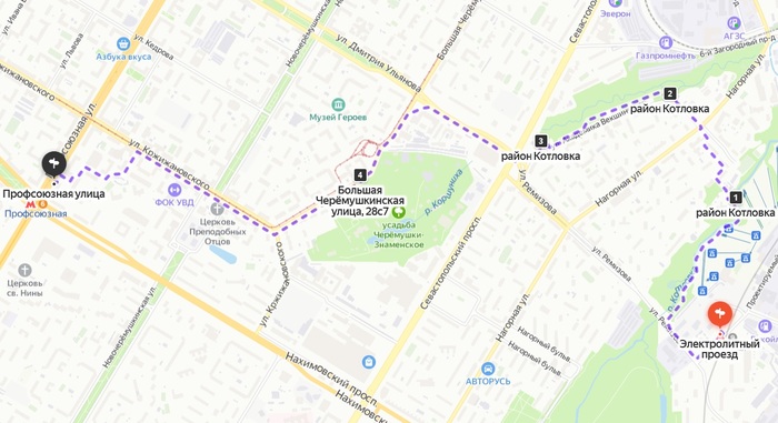 С Большой Черемушкинской проходим на улицу Кржижановского, оттуда на Профсоюзную и до станции метро "Профсоюзная". На этом пока все.