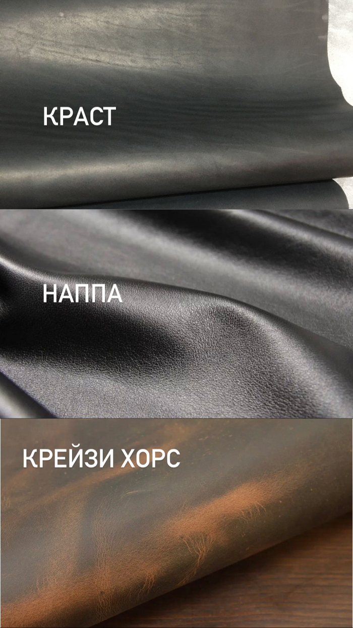 Есть ещё кожа «Крейзи хорс» по сути это «Краст» который отшлифовали и обильно обработали воском на заводе. Ее обычно относят к коже с финишным покрытием.